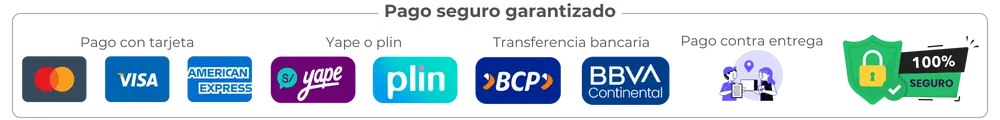 Paga con tarjeta, transferencia, contra entrega, yape, plin.
